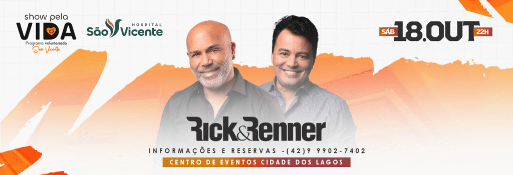 No Dia Nacional do Voluntariado, comemorado ontem (28), o Programa Voluntariado do Hospital São Vicente anunciou a grande atração da 2ª edição do Show pela Vida: a dupla sertaneja Rick & Renner. O evento beneficente acontece no dia 18 de outubro, a partir das 20h30, no Centro de Eventos Cidade dos Lagos, em Guarapuava.