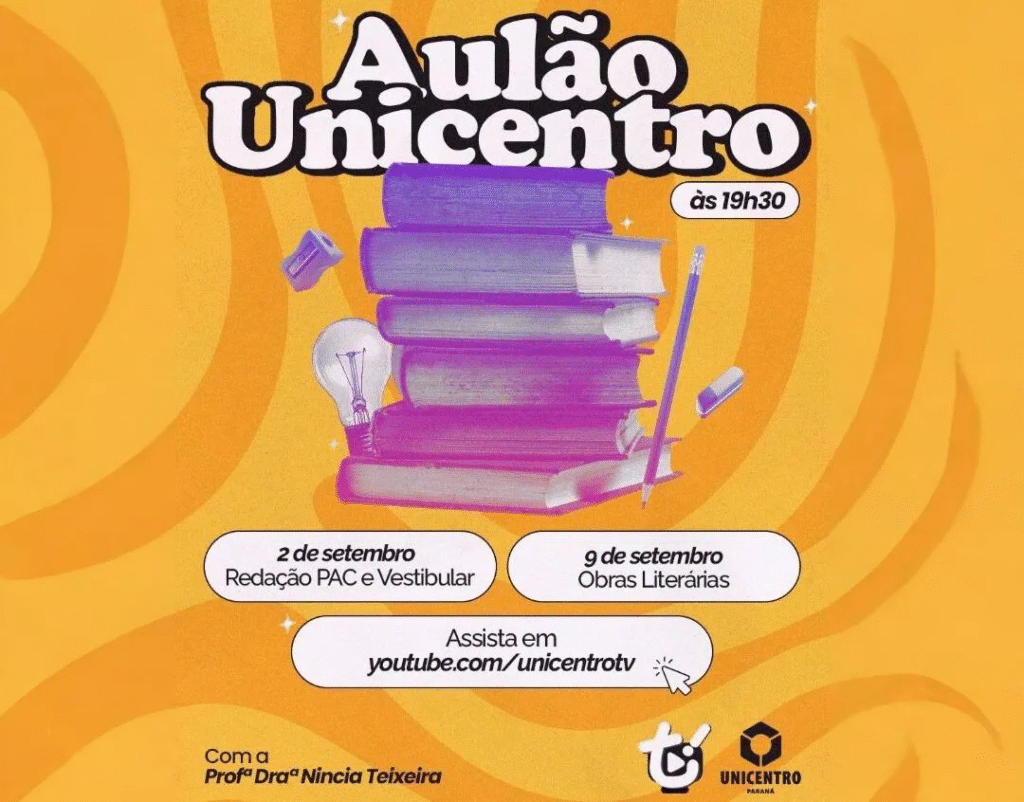 A Unicentro vai promover dois aulões preparatórios gratuitos para os candidatos ao Vestibular e ao Programa de Avaliação Continuada (PAC). As atividades ocorrem hoje (2) e na terça-feira da semana que vem (9), sempre às 19h30, com transmissão pelo canal da universidade no YouTube.