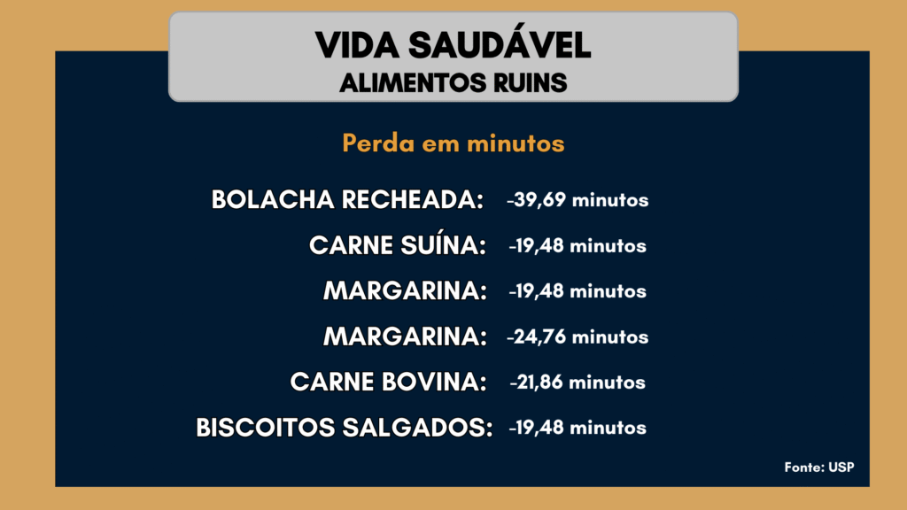 Uma pesquisa realizada pela USP, em parceria com a UERJ e a Universidade Técnica da Dinamarca, divulgada em maio deste ano, analisou 33 dos alimentos mais consumidos no Brasil e revelou quanto tempo de vida saudável pode ser perdido ou ganho de acordo com a dieta. O estudo foi publicado na revista International Journal of Environmental Research and Public Health.