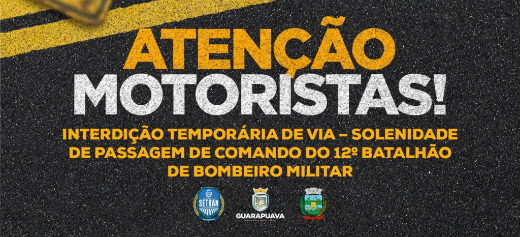 A Prefeitura de Guarapuava, por meio da Secretaria de Trânsito (SETRAN), comunica que a rua Senador Pinheiro Machado, no trecho entre a rua Pedro Siqueira e a Avenida Manoel Ribas, será interditada nesta sexta-feira (12), das 9h às 12h.