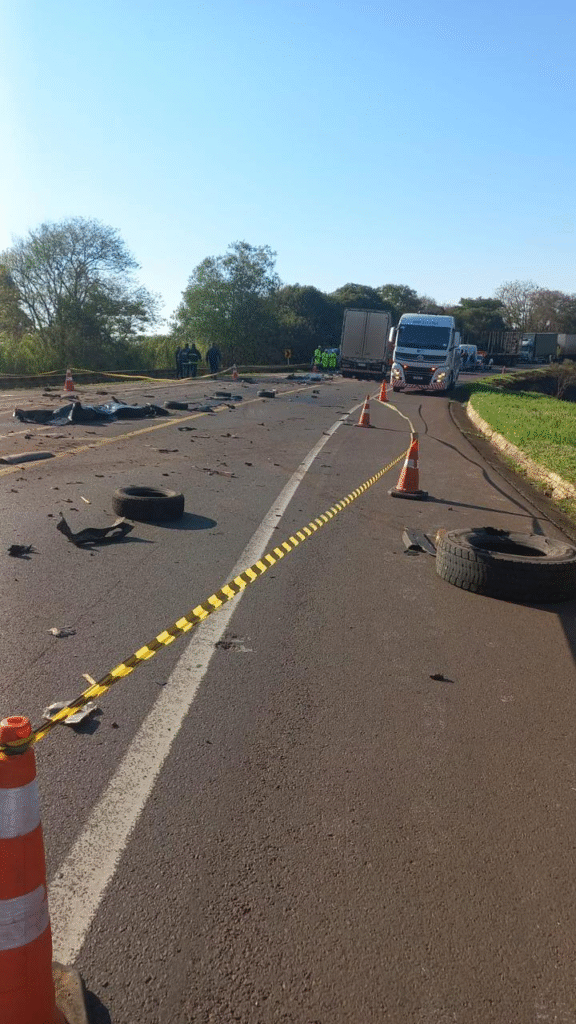 Uma acidente entre dois caminhões deixou uma vítima em óbito e outras duas pessoas feridas na manhã desta segunda-feira (15), na BR-277, em Candói.