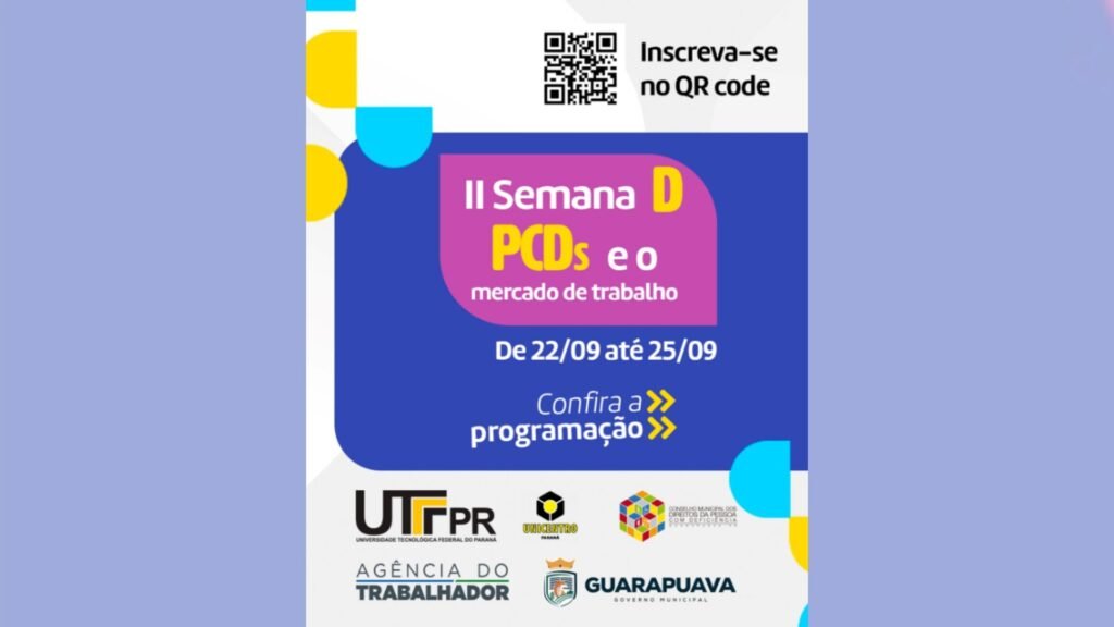 Guarapuava vai sediar, entre os dias 22 e 24 de setembro, a II Semana D – PCDs e o Mercado de Trabalho, iniciativa que integra o Plano Municipal dos Direitos da Pessoa com Deficiência (2024-2027) e que também está vinculada às atividades de extensão e curricularização do curso de Administração da Unicentro – Câmpus Santa Cruz.