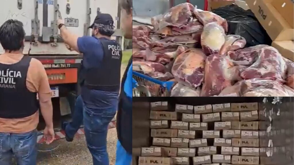 A Polícia Civil do Paraná (PCPR) prendeu quatro pessoas e recuperou mais de 17 toneladas de carne bovina roubada em Ponta Grossa, nos Campos Gerais. A carga, avaliada em R$ 700 mil, seria exportada para Dubai, nos Emirados Árabes.