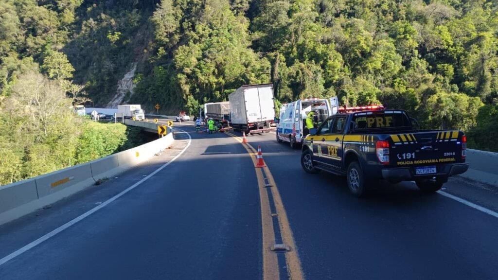 A rodovia ficou totalmente interditada até a chegada da PRF. Depois, o tráfego seguiu em sistema “pare e siga” até a retirada dos veículos. A liberação completa aconteceu às 17h47.