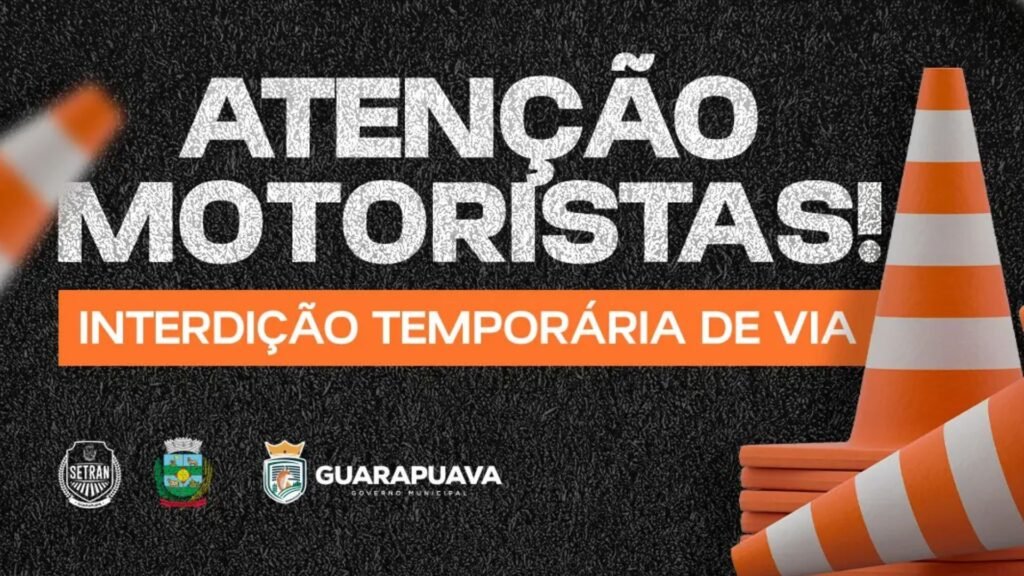 A Prefeitura de Guarapuava, por meio da Secretaria Municipal de Trânsito (Setran), informa que neste domingo (12), das 6h às 20h, haverá interdição temporária da Rua Francisco Pires da Rocha, no trecho entre as ruas Alípio Marcondes e Rufino Pacheco.