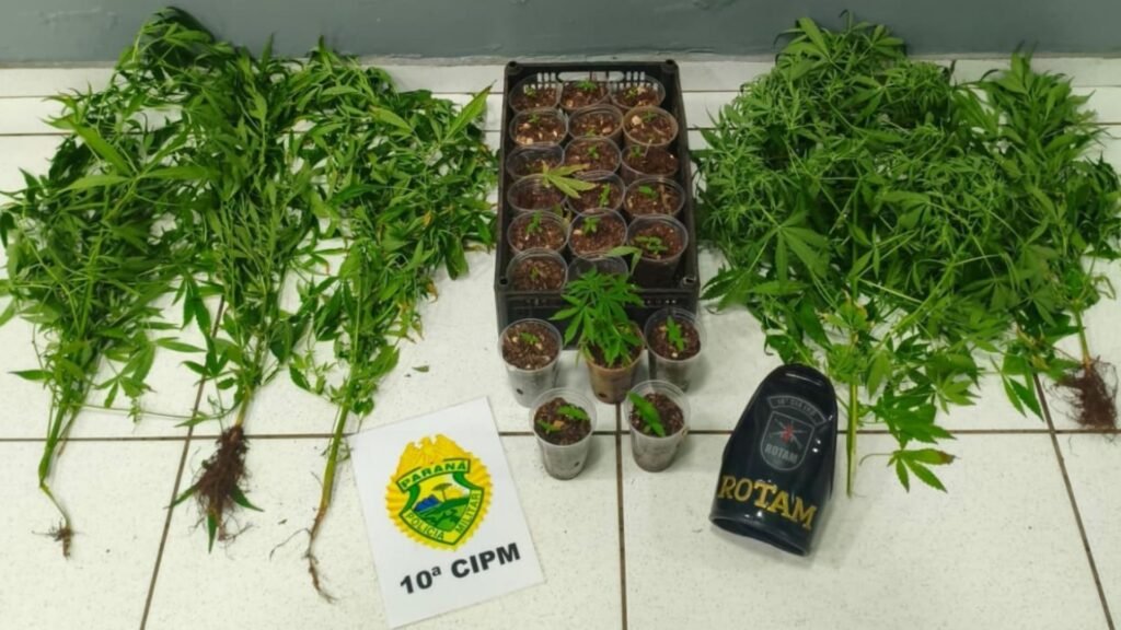 No local, os policiais encontraram três pés grandes de maconha e vinte e um vasos com novas mudas ao lado e nos fundos da casa. Dentro da residência, havia também uma estufa feita de forma artesanal, onde estavam três plantas maiores, já em fase de crescimento.