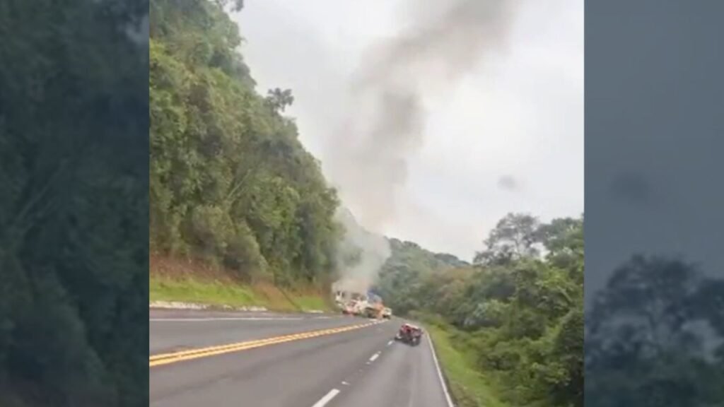 Segundo a Polícia Rodoviária Federal (PRF), a rodovia precisou ser totalmente interditada para o trabalho do Corpo de Bombeiros. A operação durou cerca de uma hora. Depois, o fluxo foi liberado nos dois sentidos, com desvio pelo local.