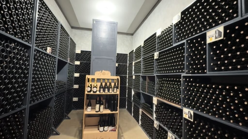 Dentro da cave, como são chamados os ambientes escuros e com temperatura controlada para guardar e envelhecer vinhos, o produto deixa de ser apenas bebida e vira memória. Ali, as garrafas ficam organizadas por setores, em espaços mantidos a cerca de 18 graus, pensados justamente para conservar cada rótulo nas condições ideais. Cada rótulo conta um pedaço da história da família e do lugar.