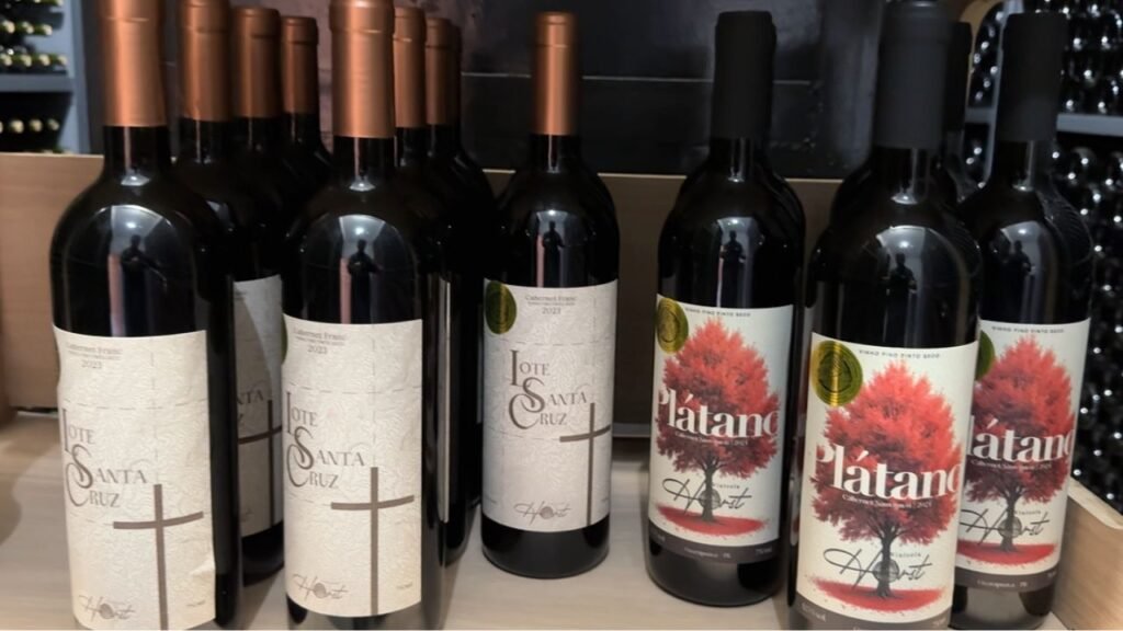 O Damah é o rótulo dedicado às mulheres da vinícola, à própria Joelma, à filha Gabriela e também à filha que não chegou a nascer, que se chamaria Helena. “Esse rótulo foi pensado só por mulheres, desde o nome até o design da garrafa”, explica. O Angolista nasceu de uma fase curiosa da propriedade, quando havia muitos animais peçonhentos na área e a solução encontrada foi criar galinhas-d’angola para ajudar a afastá-los. O Mil e Cem carrega no nome a altitude da propriedade, em torno de 1.100 metros, reforçando a proposta de vinhos de altitude. O Plátano homenageia uma árvore centenária, com mais de cem anos, plantada pelo pai de um parceiro que fornece uvas para a vinícola. Já o Três Torres completa a linha como rótulo de Sangiovese e também faz parte da história construída ao longo desses primeiros anos do projeto.
