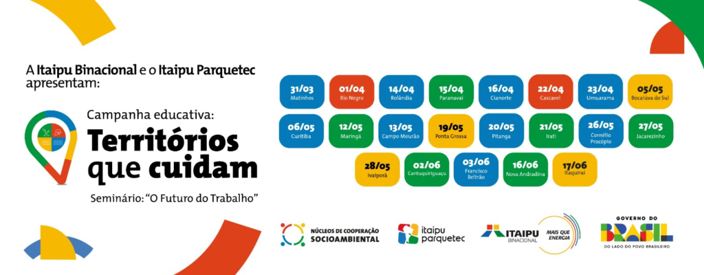 Os Núcleos de Cooperação Socioambiental iniciam, nesta terça-feira (31), em Matinhos (PR), um novo ciclo de seminários no Paraná e no sul do Mato Grosso do Sul, com o tema “O Futuro do Trabalho”. Com realização da Itaipu Binacional e do Itaipu Parquetec, a iniciativa percorrerá 21 municípios com o objetivo de fomentar reflexões e debates sobre as transformações nas profissões diante do avanço da inteligência artificial e das novas tecnologias.