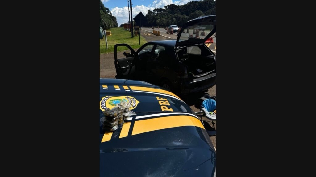 A abordagem aconteceu durante fiscalização de rotina. Os policiais pararam um Fiat Palio, com placas de Curitiba, e constataram que o motorista não possuía Carteira Nacional de Habilitação. Durante a conversa, ele e a passageira apresentaram nervosismo e versões contraditórias, o que levantou suspeitas.