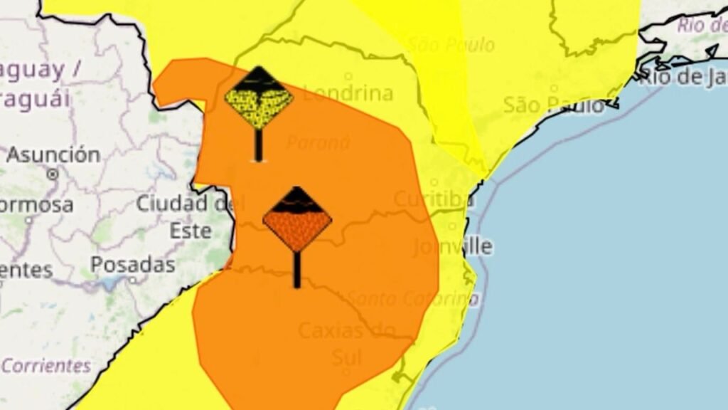 Diante desse cenário, o Instituto Nacional de Meteorologia emitiu aviso de tempestade com grau de severidade classificado como perigo potencial. O alerta começou às 11h15 desta terça-feira (07) e segue até as 23h59. Para o Paraná, as áreas destacadas no aviso incluem o Norte Pioneiro, a Região Metropolitana de Curitiba, o Centro Ocidental, o Noroeste, o Norte Central, o Sudoeste, o Oeste, o Sudeste, o Centro Oriental e o Centro-Sul paranaense.
