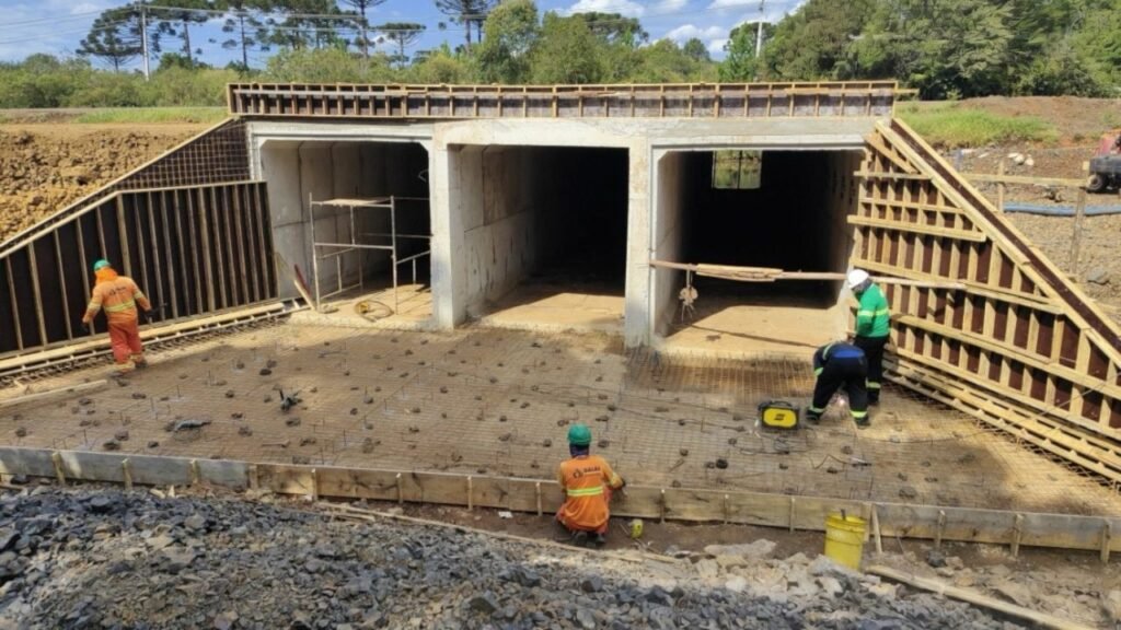 Também está avançada a construção das obras de arte especiais no trecho, que incluem uma nova ponte sobre o Rio Turvo, onde em breve vão começar os serviços no tabuleiro da estrutura; e o novo viaduto em Palmeirinha, no entroncamento com a Rua Manoel Moreira de Campos, com início das escavações para cravar estacas da base. Em breve também serão iniciadas as atividades do novo viaduto em Turvo, no entroncamento com a Avenida XV de Novembro, com as vigas longarinas pré-moldadas de ambos sendo montadas enquanto isso.