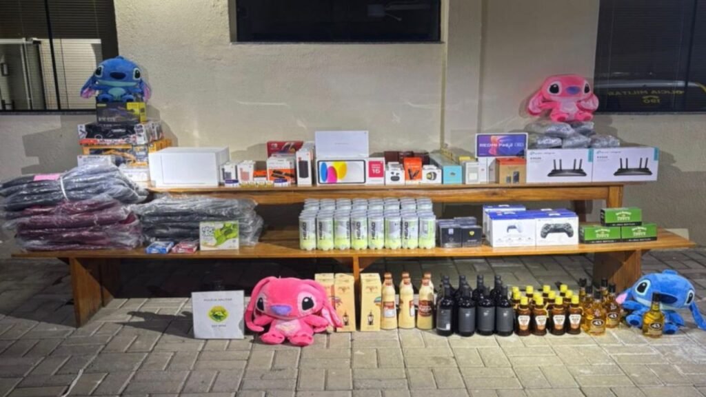 Dentro do veículo, foram encontrados eletrônicos e bebidas. O homem foi autuado por descaminho.