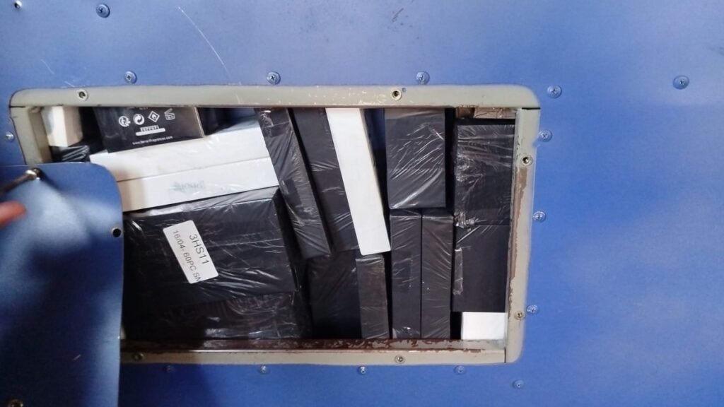 Na vistoria, os agentes encontraram um compartimento escondido na cabine, localizado na parte traseira, atrás do banco do passageiro. Dentro do espaço estavam os celulares, incluindo modelos de alto valor, como iPhones 17 Pro Max.