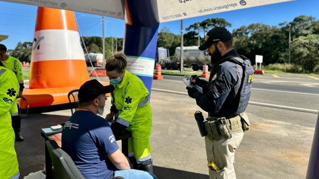 A Polícia Rodoviária Federal (PRF) promoveu, na manhã desta quinta-feira (23), um comando de saúde voltado a motoristas profissionais, com foco na aferição da pressão arterial, na BR-277, em Guarapuava (PR).