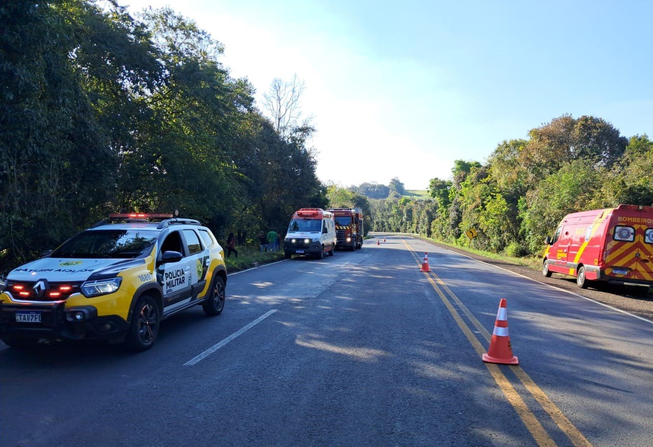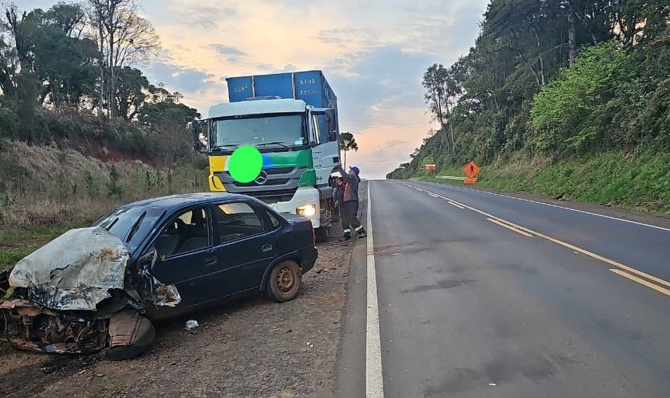 Um jovem de 22 anos ficou ferido em um acidente registrado na manhã desta terça-feira (2) na PRC-466, em Turvo. Segundo a Polícia Rodoviária Estadual (PRE), o acidente aconteceu por volta das 5h15, no km 221, e envolveu um carro e dois caminhões. De acordo com o boletim, carro, conduzido